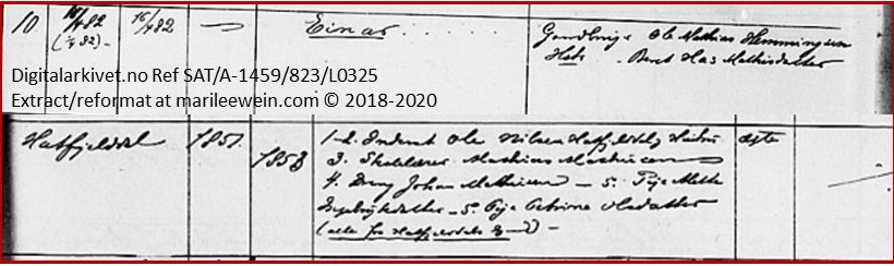 Insight 2: With renewed and more informed scrutiny on Ed’s documents, the name Alette Ingebrigtsdatter popped out as a witness on his birth and baptism record. She became his stepmother ten years later.
