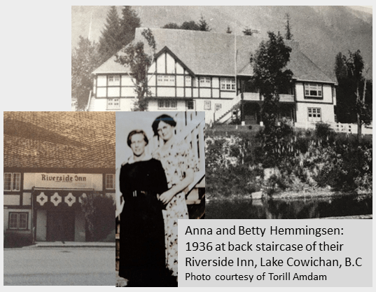 In 1932, Ed and Anna bought Riverside Inn at Lake Cowichan, to rebuild. It had burned to ruin. It re-opened April 15, 1933, under their management, with George.4 They held it for five years.
